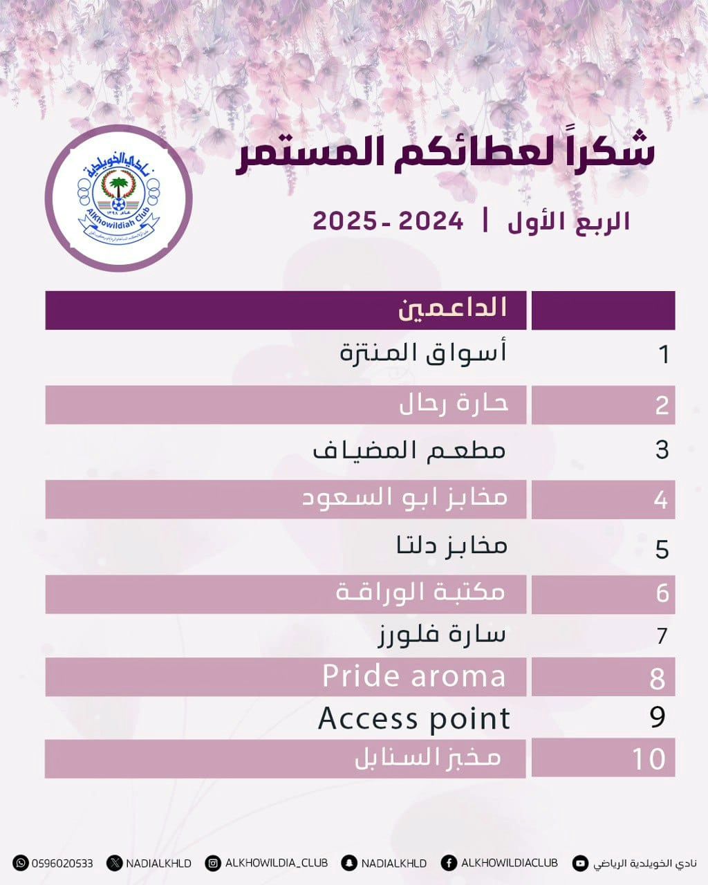 شكراً إلى الداعمين 😘 شكراً لعطائكم المستمر 💐 #نادي_الخويلدية 💙💚❤️