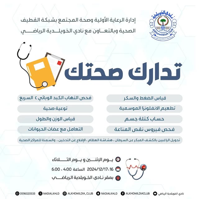 ✨ إدارة الرعاية الأولية وصحة المجتمع بشبكة القطيف الصحية وبالتعاون مع نادي الخويلدية الرياضي