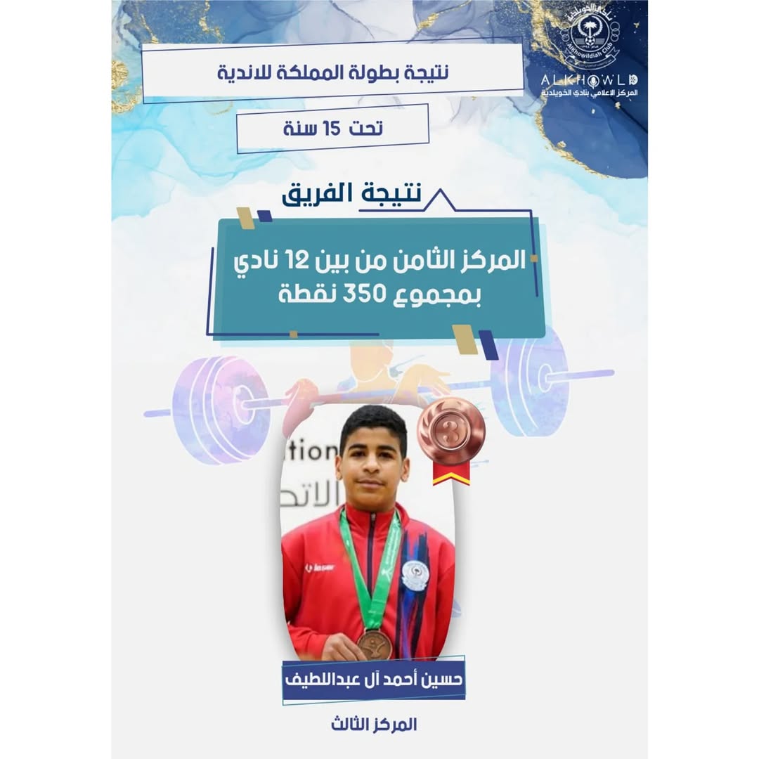 🏋🏻♂️| نتيجة بطولة المملكة للأندية لرفع الأثقال تحت 15 سنة