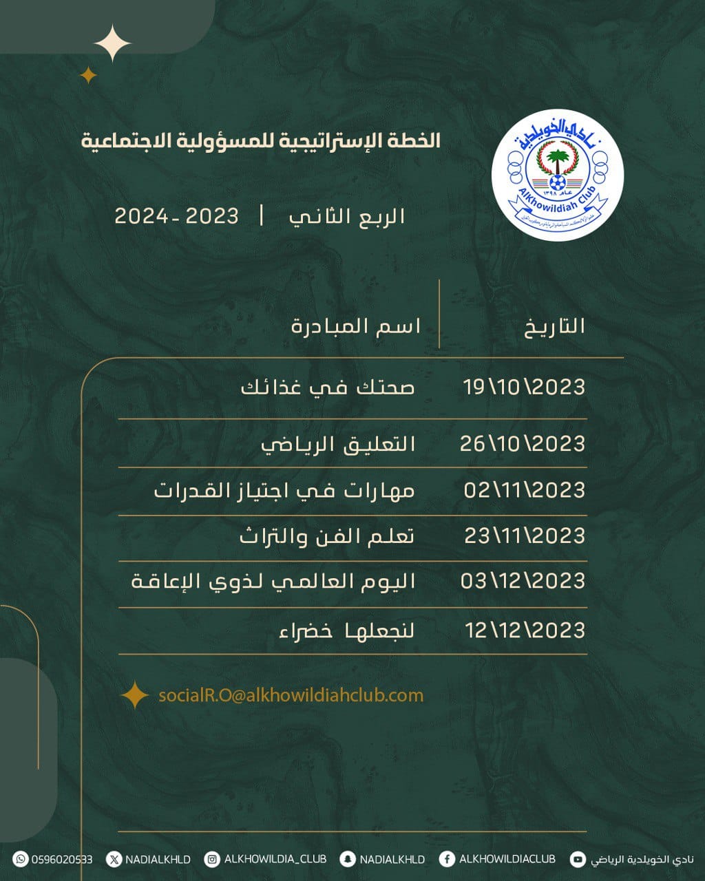 خطط المسؤولية الاجتماعية خطة الربع الثاني 2023-2024 khowpadminأكتوبر 1, 20230 khowpadminأكتوبر 1, 20230